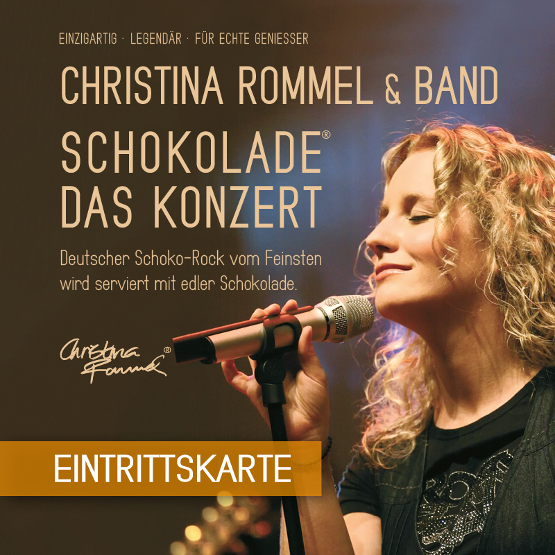 Zu den Klängen bekannter Rommel-Songs beginnt eine fesselnde musikalische Reise durch die Welt der Schokolade; garniert mit genussvollen Schoko-Geschichten und witzigen Dialogen. Verführerische Aromen strömen sanft durch die Luft und harmonieren mit der atmosphärischen Schoko-Kulisse. Meister-Chocolatier Dirk Beckstedde serviert diverse Kostproben seines Könnens und natürlich zeigen Christina Rommel und Band, warum sie zu den besten Live-Musikern des Landes gehören.